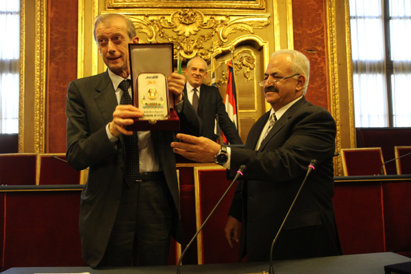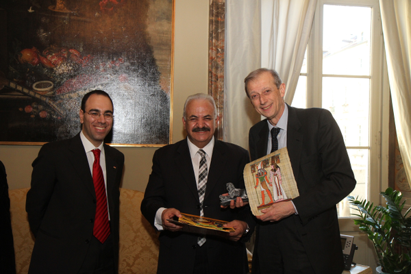 Le Maire de la Ville de Torino Piero Fassino et l'Amb. Franco Giordano, Conseiller Diplomatique de la ville de Torino,ont reçu une délégation du Gouvernorat de Luxor, à Torino pour l'inauguration du Nouveau Musée Egyptien. A cette occasion et en la présence parmi les autres, à la Mairie, du Vice Gouverneur de Luxor Adel Mahran et du Consul Général d'Egypte à Milan Aleya Mohamed Samy Abul Ezz, le premier avril unAccord de Collaboration